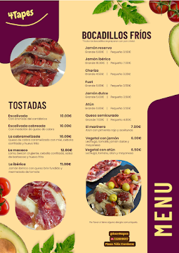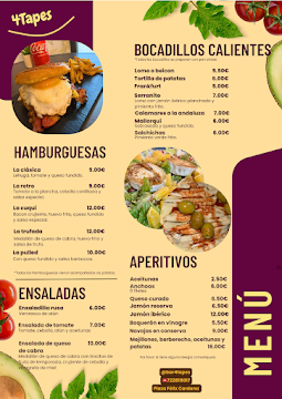Tapas, hamburguesas, bocadillos, tostadas y más. Toca para ver cada sección al completo.