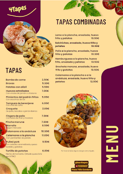 Tapas frías y calientes: bombas de la Barceloneta, calamares, bravas, ensaladilla rusa y croquetas caseras de jamón, pollo y bacalao. Cocina abierta todo el día.